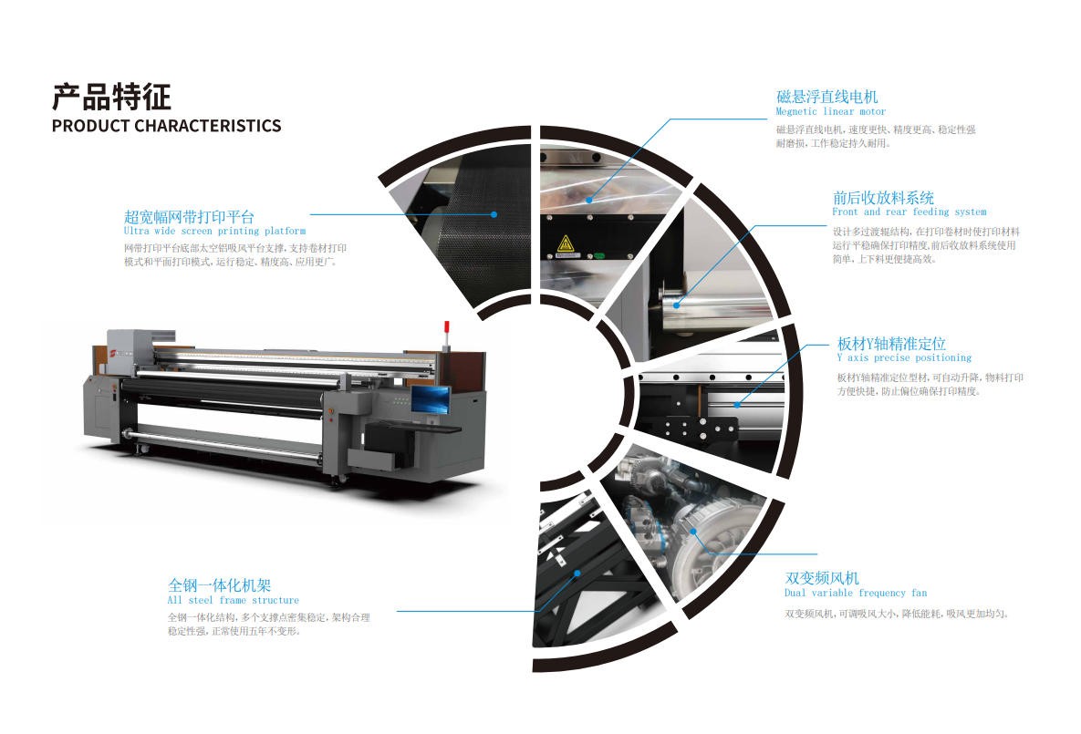 擁有自動(dòng)測(cè)高系統(tǒng)、自主研發(fā)RIP軟件、雙軸防撞系統(tǒng)、獨(dú)創(chuàng)錐孔吸風(fēng)平臺(tái)、德國(guó)易格斯拖鏈、日本THK品牌導(dǎo)軌搭配雙Y軸絲桿、雙伺服驅(qū)動(dòng)設(shè)計(jì)等設(shè)備配件。