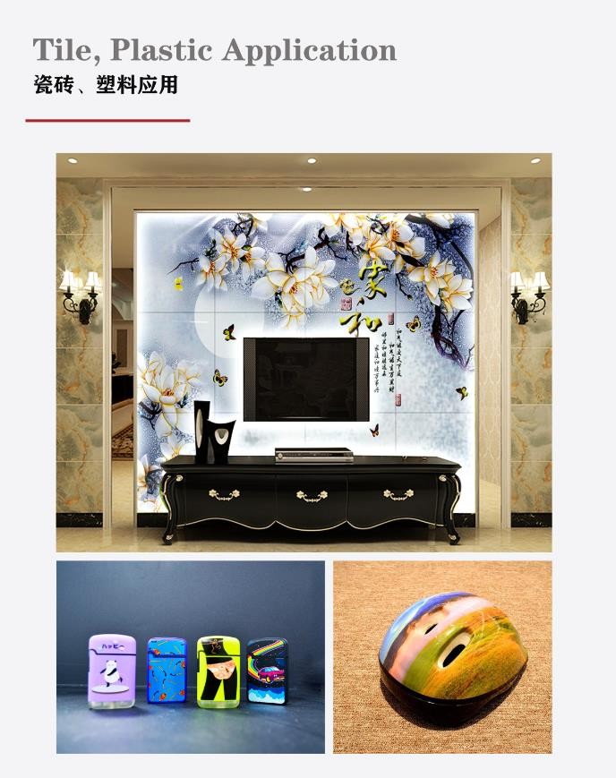 門板、瓷磚、玻璃、UV 板材、天花吊頂、竹木纖維板、石膏板、波浪板等材料都可以用UV打印機(jī),適用于全屋定制、集成墻板、藝術(shù)玻璃、家裝布藝等行業(yè)。